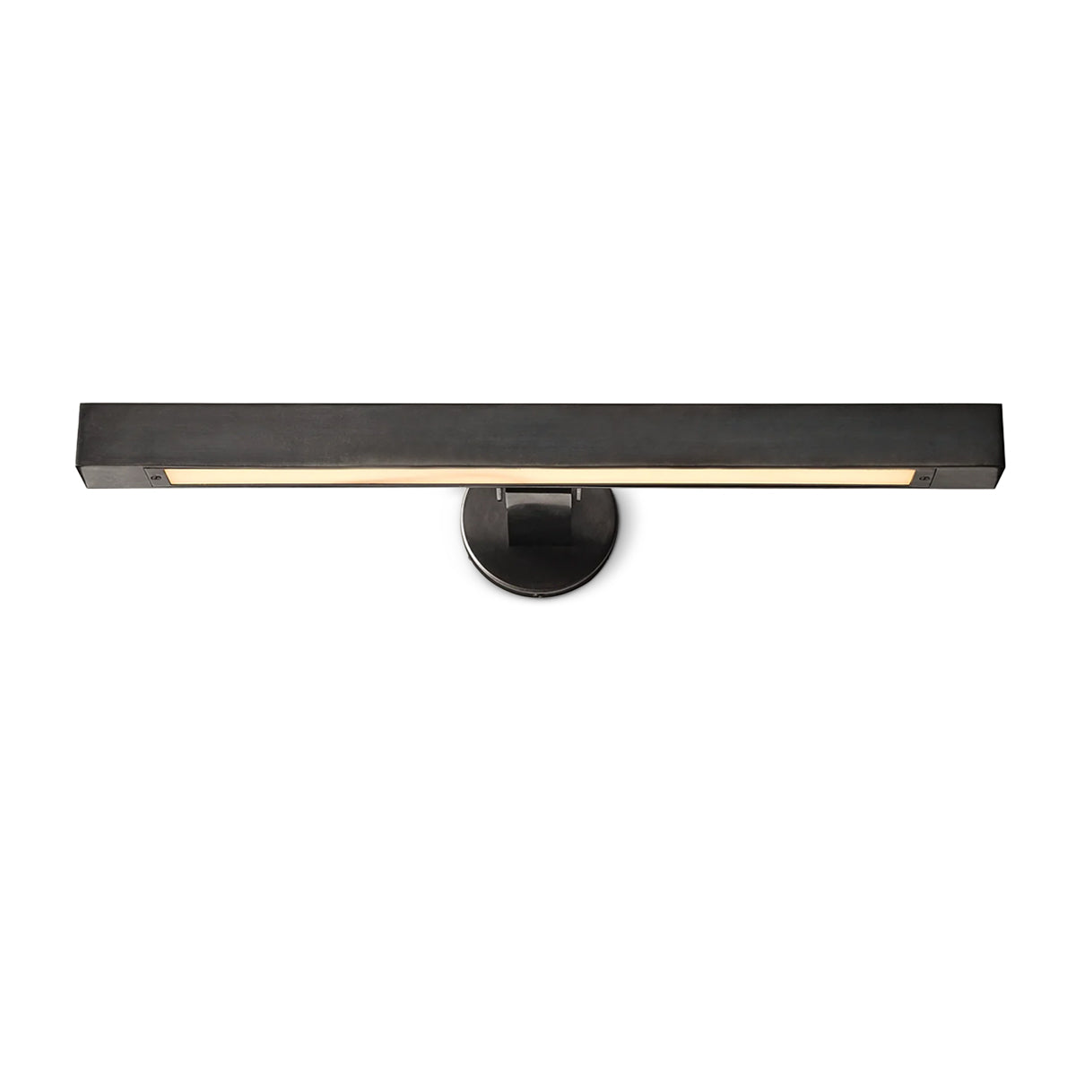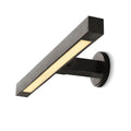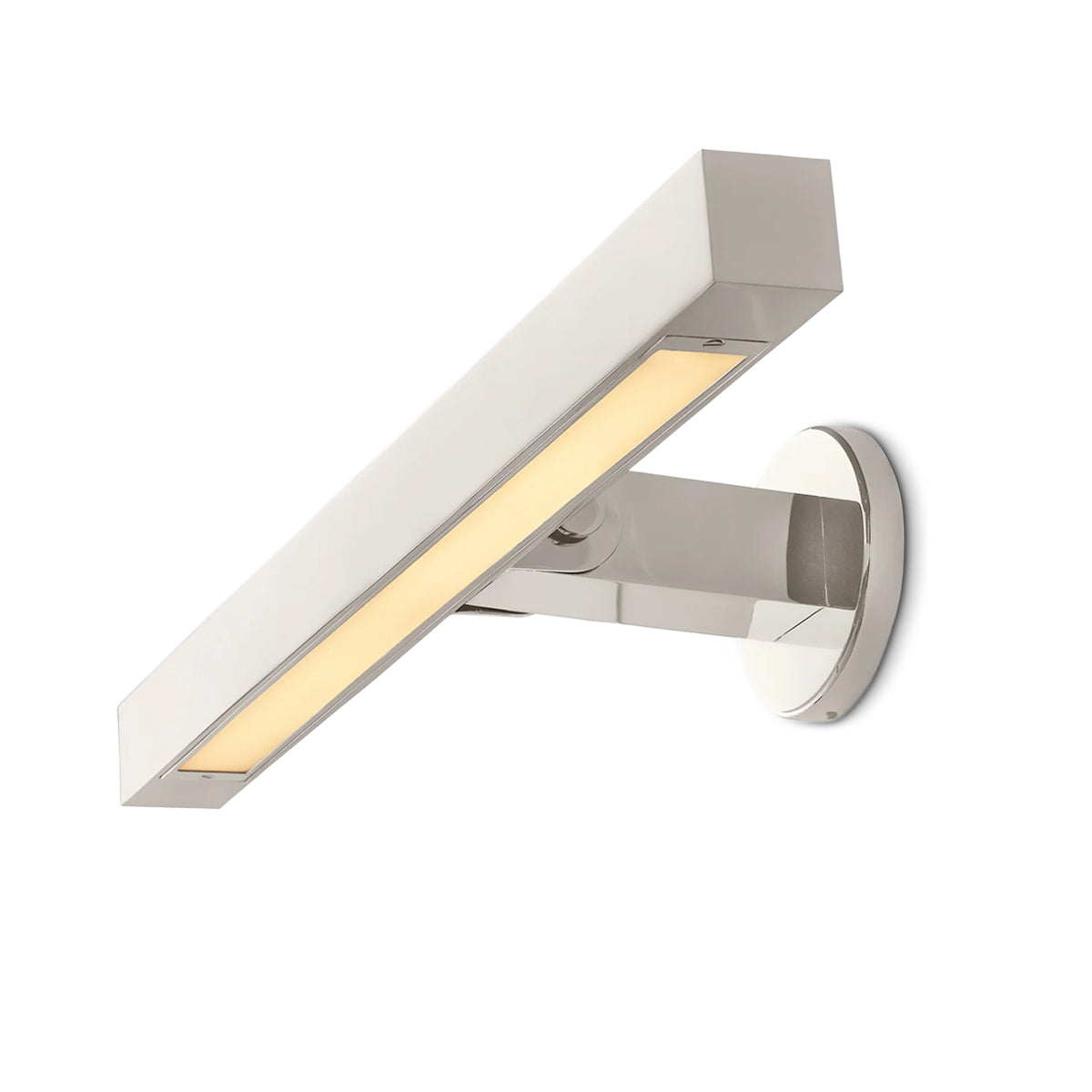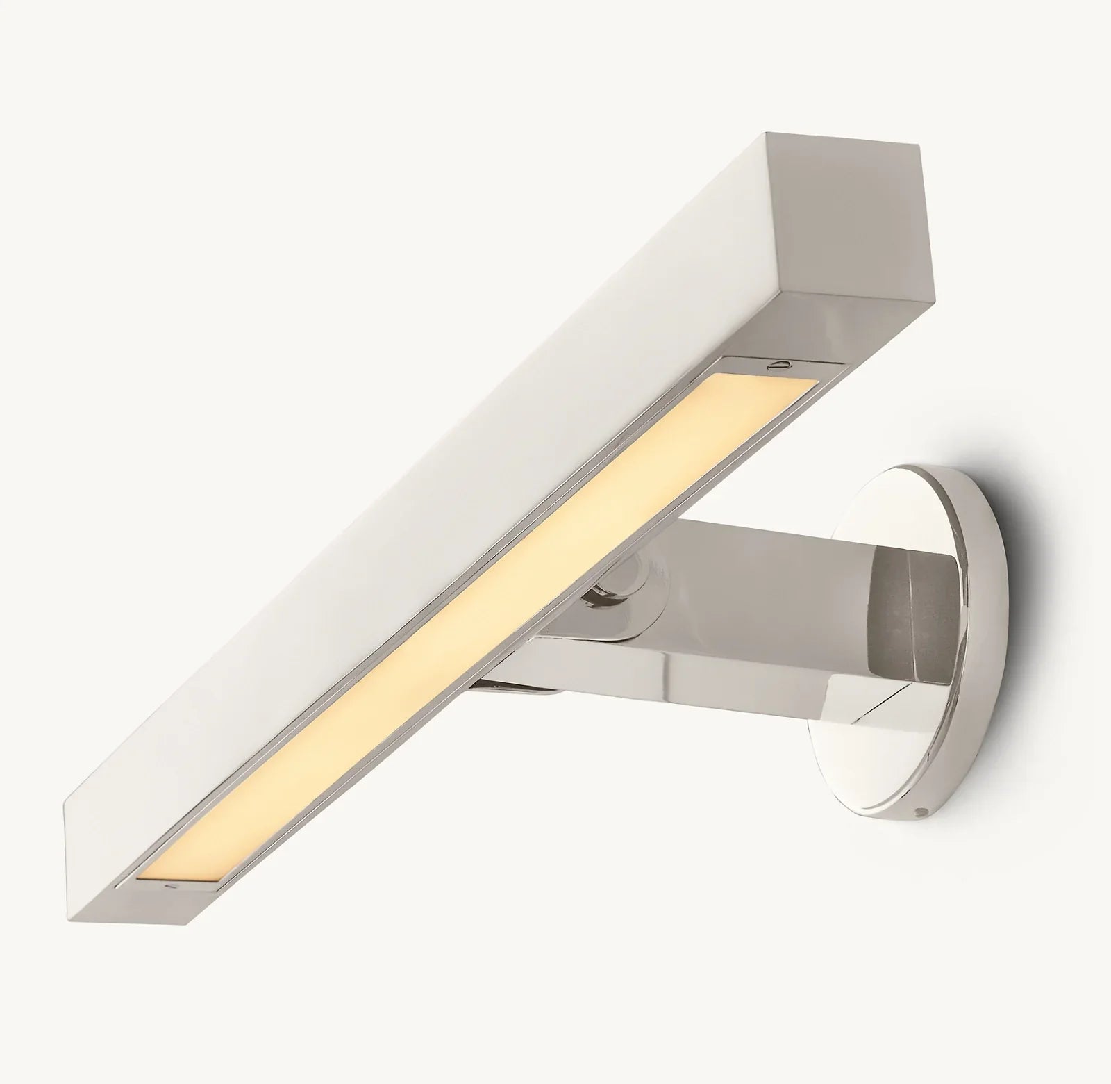 This fixture reinterprets the form of the aesthetic art sconce with clean lines and sharp angles. An integrated LED panel provides focused light.
