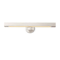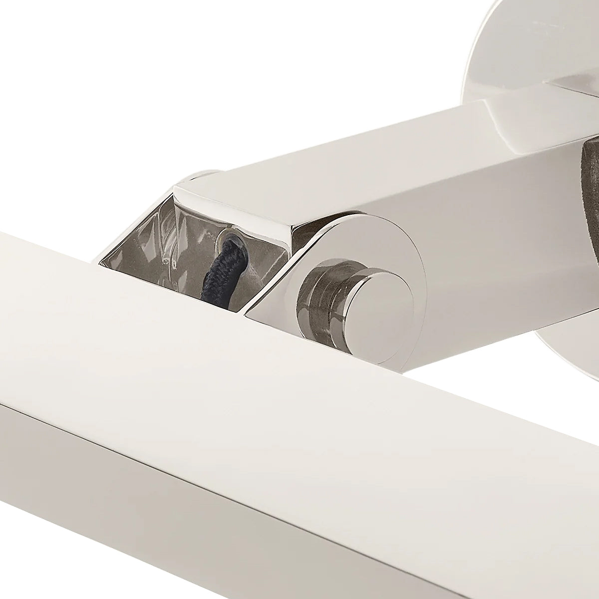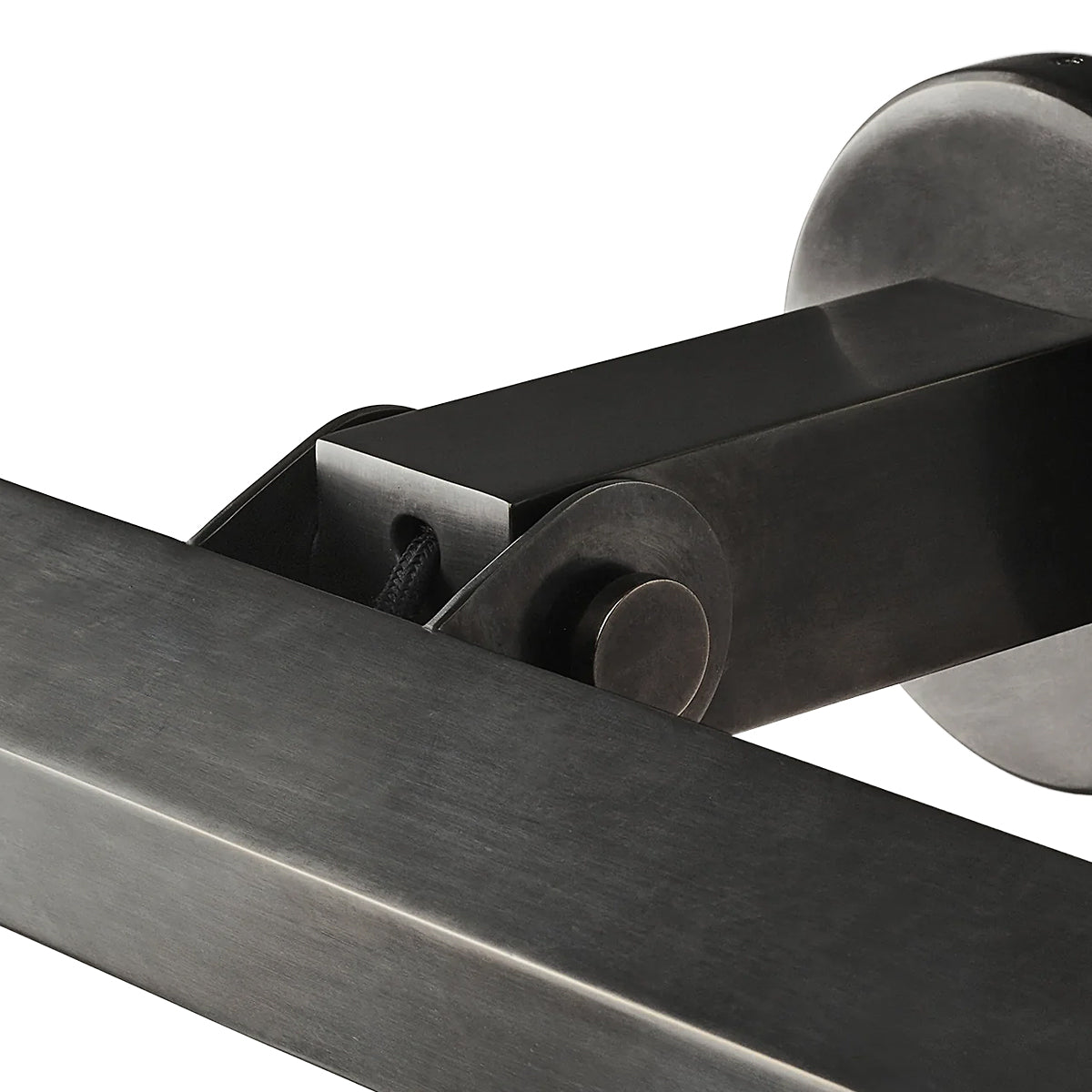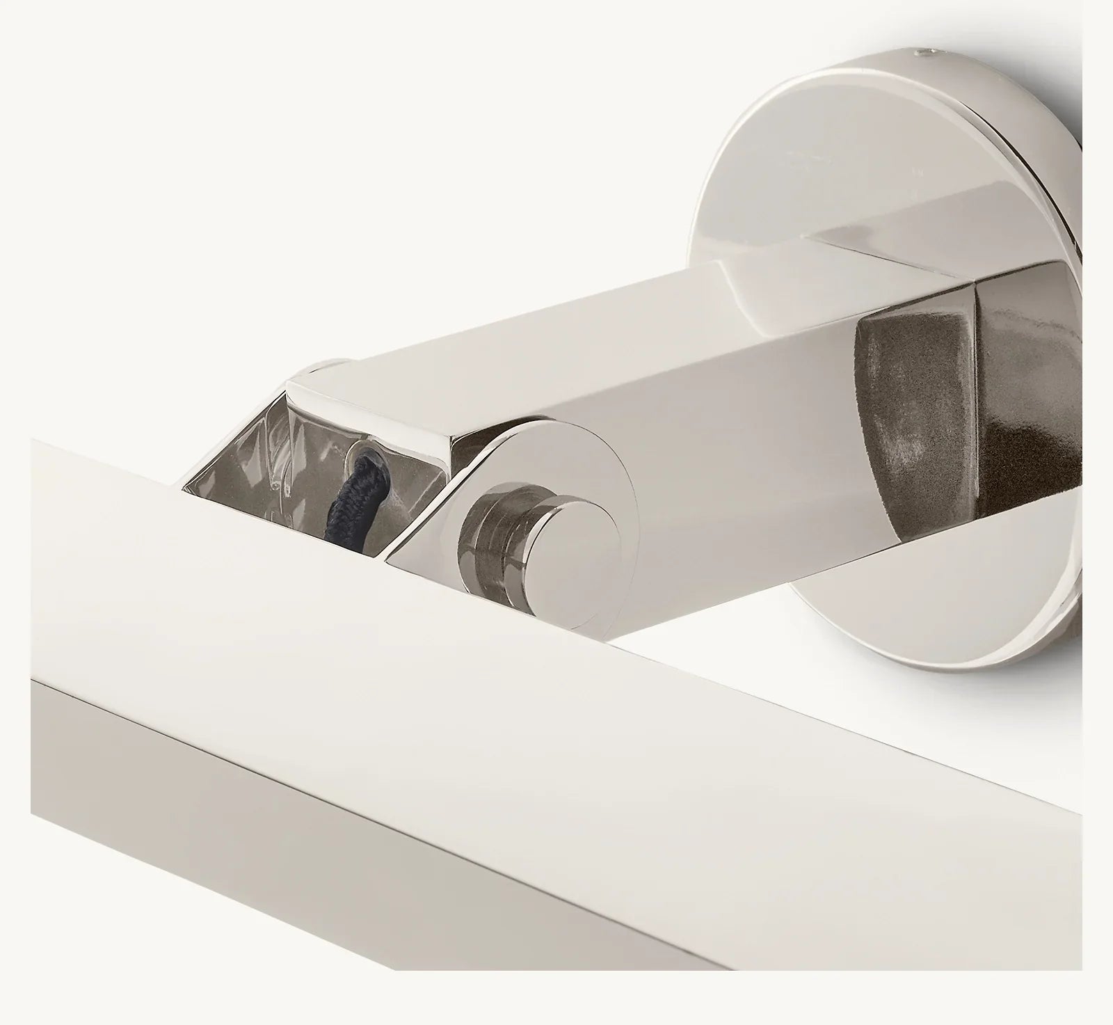 This fixture reinterprets the form of the aesthetic art sconce with clean lines and sharp angles. An integrated LED panel provides focused light.