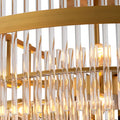 The antique brass finish complemented by radiant clear glass invites a lavish atmosphere, making it the centerpiece of any room.