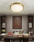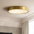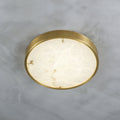 Illuminate your home with the classic Geometric Alabaster Recessed Ceiling Light. Crafted from brass, the light features a round alabaster white glass shade, delivering warm, diffused light to your space below. Perfect for adding a timeless touch to your home.