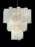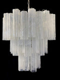 Italian chandelier with Murano glass on metal structure. The lampshade supports 48 large alabaster white glass tubes in star shape.