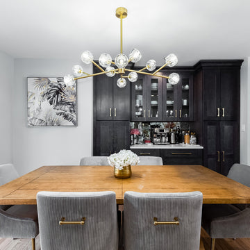 Bulbs: 8 bulbs E27 dimension also works with dimmer.
