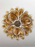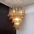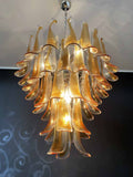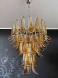 Treat your home to a unique elegance with our large and super beautiful Italian Murano chandelier in Mazzega style. This impressive chandelier is made from 52 large amber petals that are beautifully framed in a chrome frame.