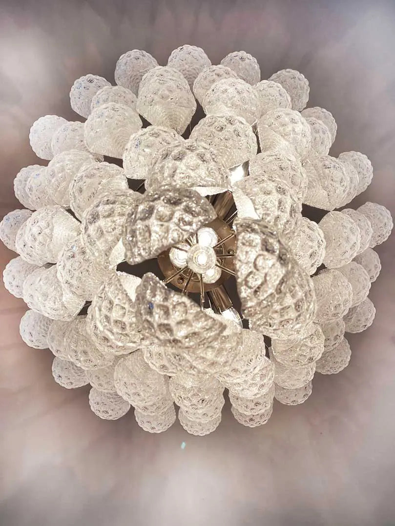 Add elegance to any room with the Murano Chandelier. With 85 transparent glasses, this chandelier will provide a stunning and sophisticated lighting experience. The hand-blown Murano glass adds a touch of luxury, making it a must-have for any modern or traditional space. Add a statement piece to your home today.