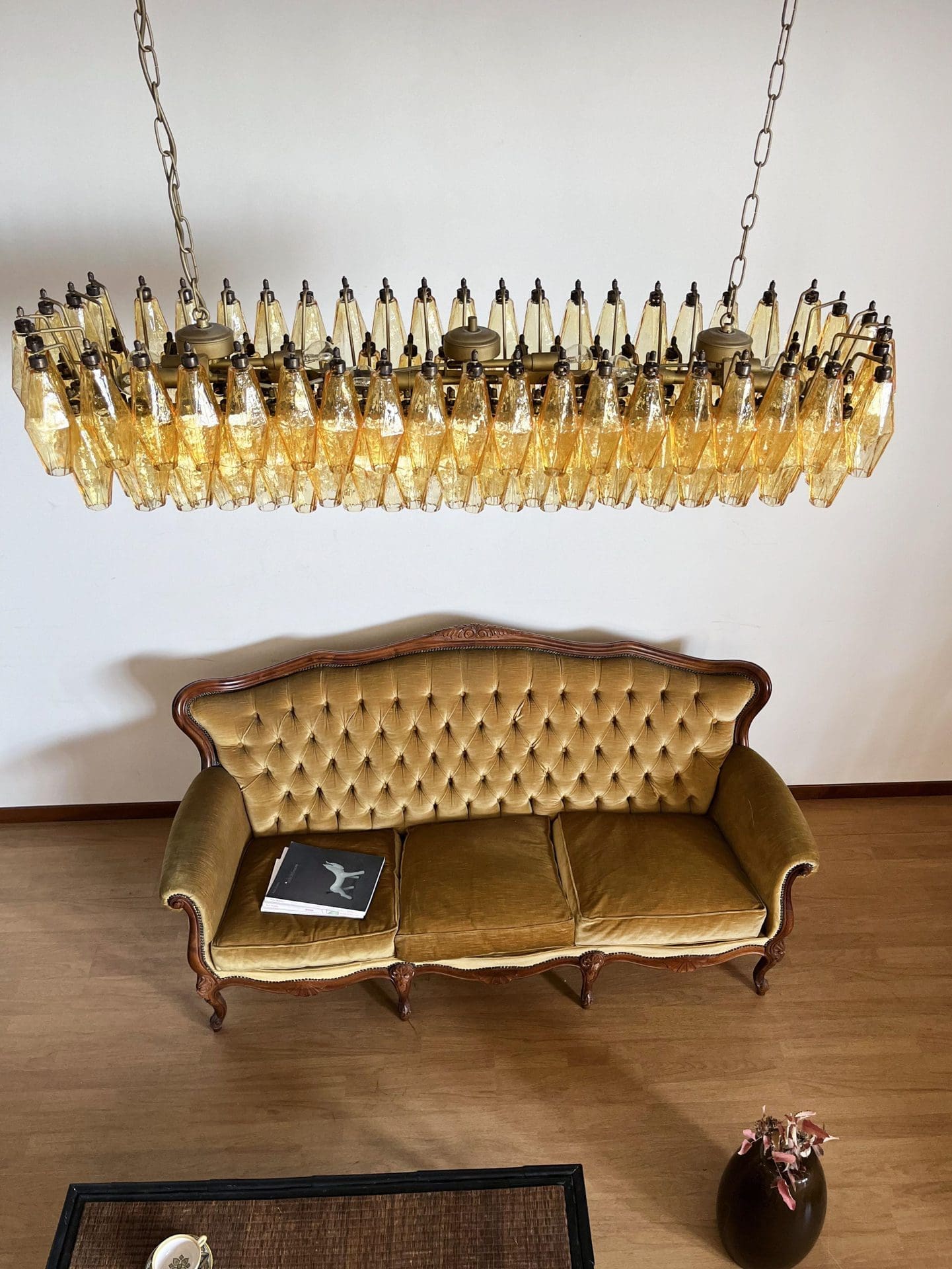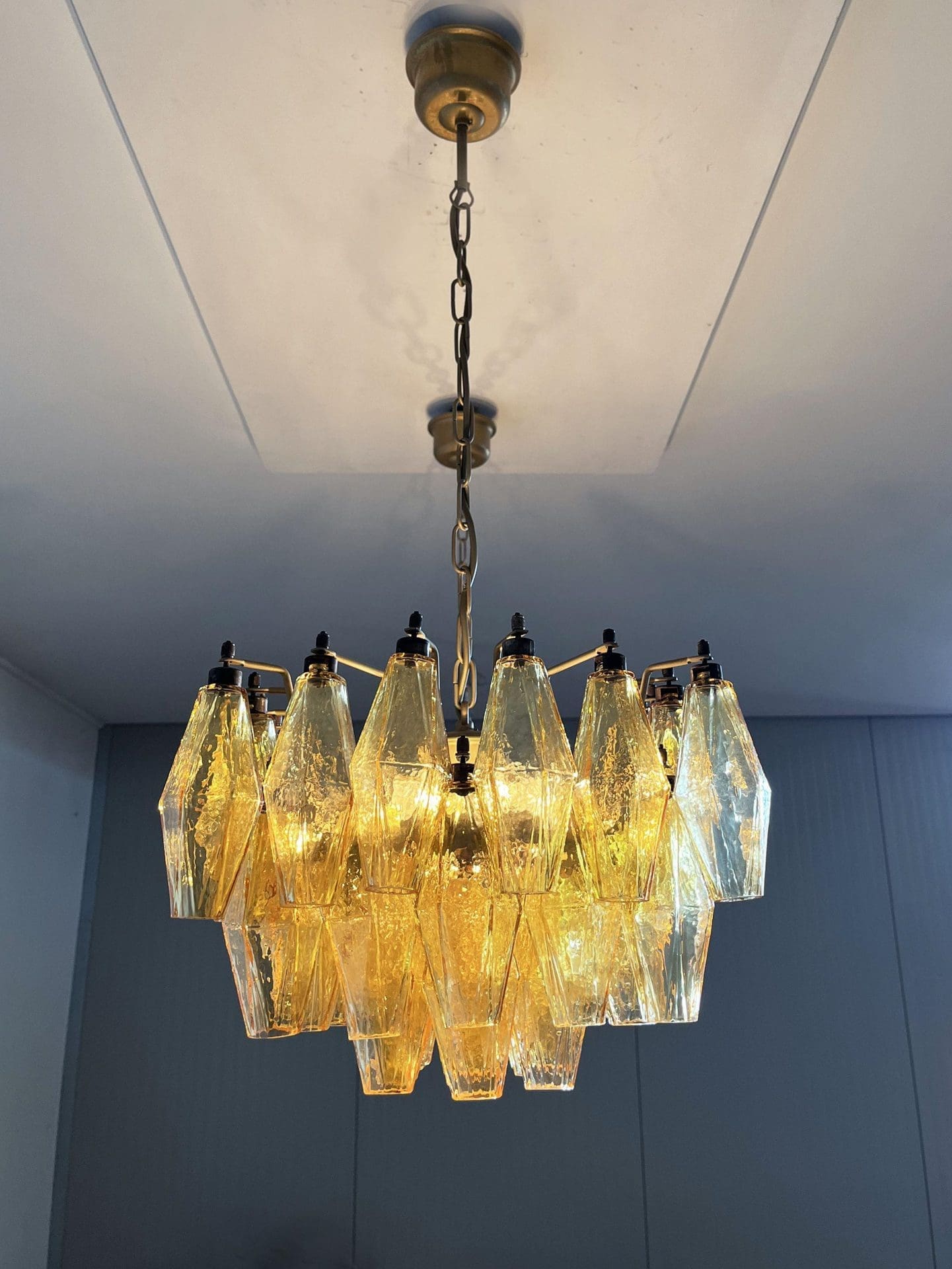 Achieve sublime elegance in your home with our Italian Murano chandelier, a masterpiece of glass craftsmanship. Each of the 138 handmade and mouth-blown transparent Poliedri glasses reflects light and spreads an enchanting glow in any room.