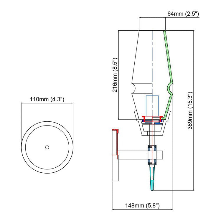 - Dimension:4.3" W x 5.8" D x 15.3 "H