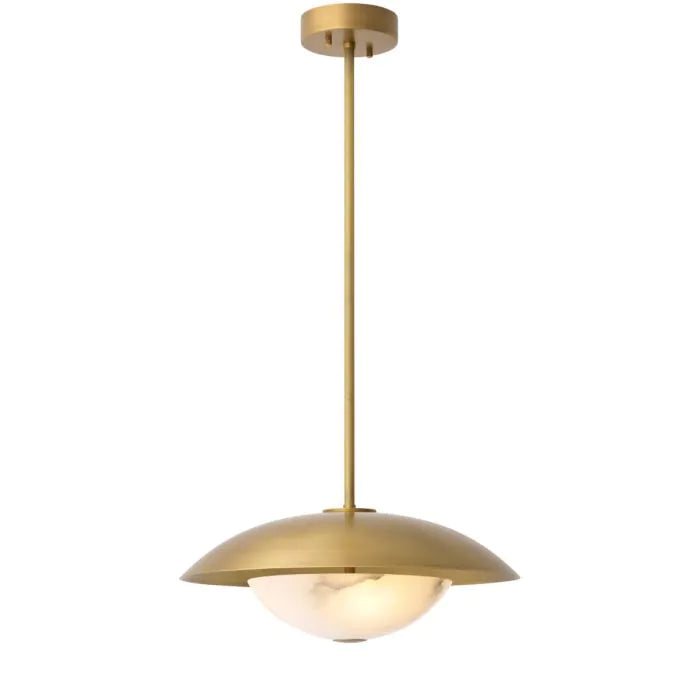 Crafted from a single piece of alabaster, this lighting solution exudes a soft, ambient glow, matched by its luxurious antique brass finish. The exquisite combination of materials elevates any interior with a sophisticated and exclusive air, befitting discerning tastes and elegant spaces.