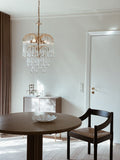This one-of-a-kind masterpiece exudes refined elegance with its meticulously hand-crafted, drop-shaped glass prisms on a beautiful brass frame, created according to the finest craftsmanship of the Murano tradition. Each drop of glass catches and reflects the light in the finest light/shadow play, filling the room with a warm, inviting glow. Perfect for both dining areas and elegant foyers, this chandelier adds a sophisticated blend of history and personal decor to any luxurious space.