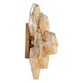 This gorgeous wall lamp with antique brass finish features diamond-shaped tubes of amber glass that let light fall through, creating a fascinating light display on your interior surroundings.